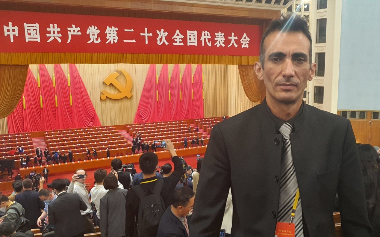 阿尔及利亚国家广播电视台记者穆罕默德·沃伊勒在人民大会堂留影。受访者供图