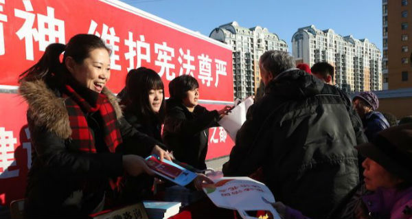 12月4日,在第四个国家宪法日,北京市隆重启动2017年“12·4”国家宪法日系列主题宣传活动。据悉,“学习贯彻党的十九大精神 弘扬宪法精神”活动在首都图书馆举行,由北京市法制宣传教育领导小组办公室、中共北京市委宣传部、北京市司法局、北京市文化局共同主办。