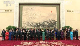 习近平同外方代表团团长及嘉宾集体合影漫画